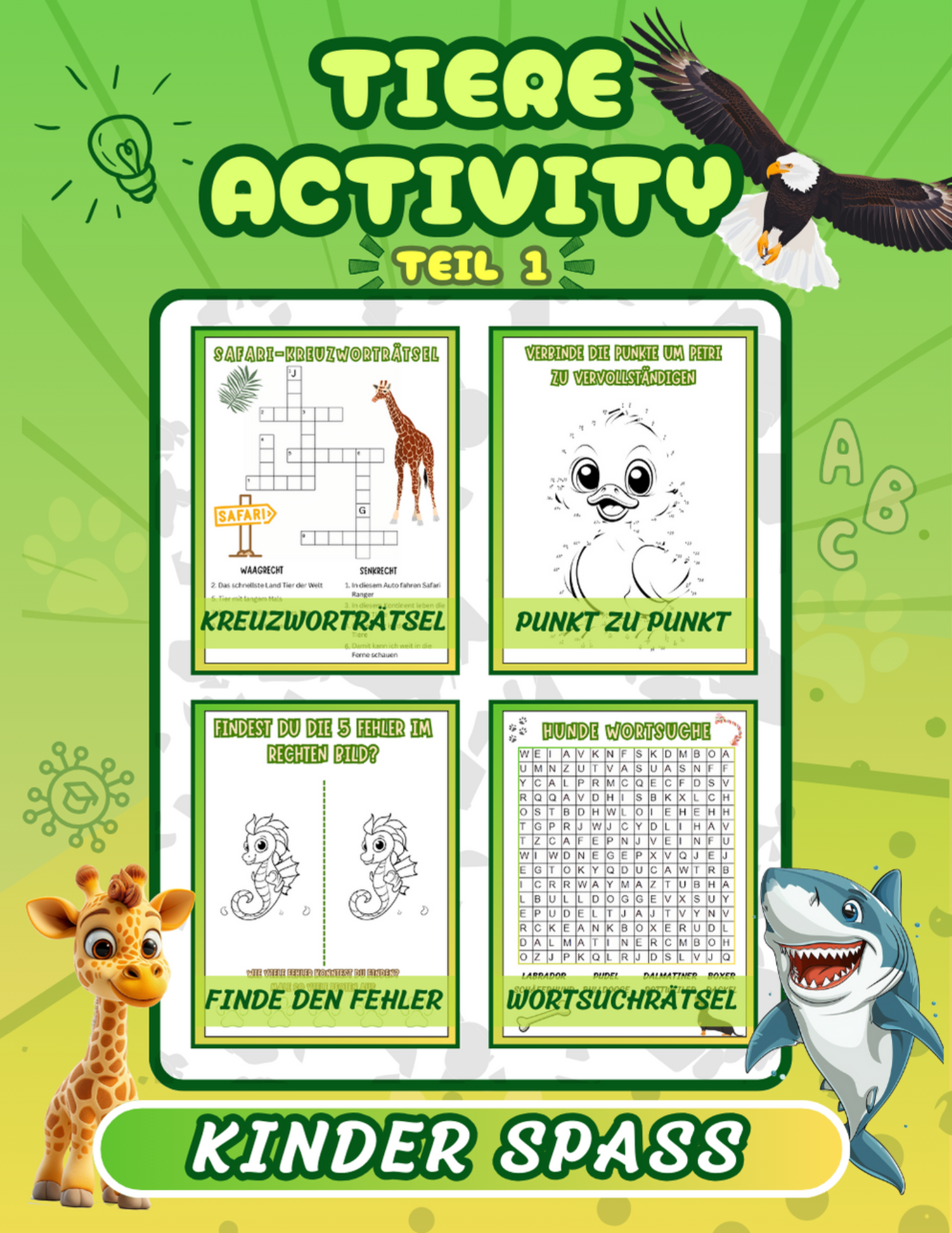 🧩 Vielfältige Rätsel: Mit Kreuzworträtseln, Wörtersuchrätseln, Punkt-zu-Punkt Ausmalmotiven, Labyrinthen, Ausmalmotiven, Finde-den-Fehler-Aufgaben und Wortreihenfolge-Spielen werden die kognitiven und kreativen Fähigkeiten der Kinder gefördert.